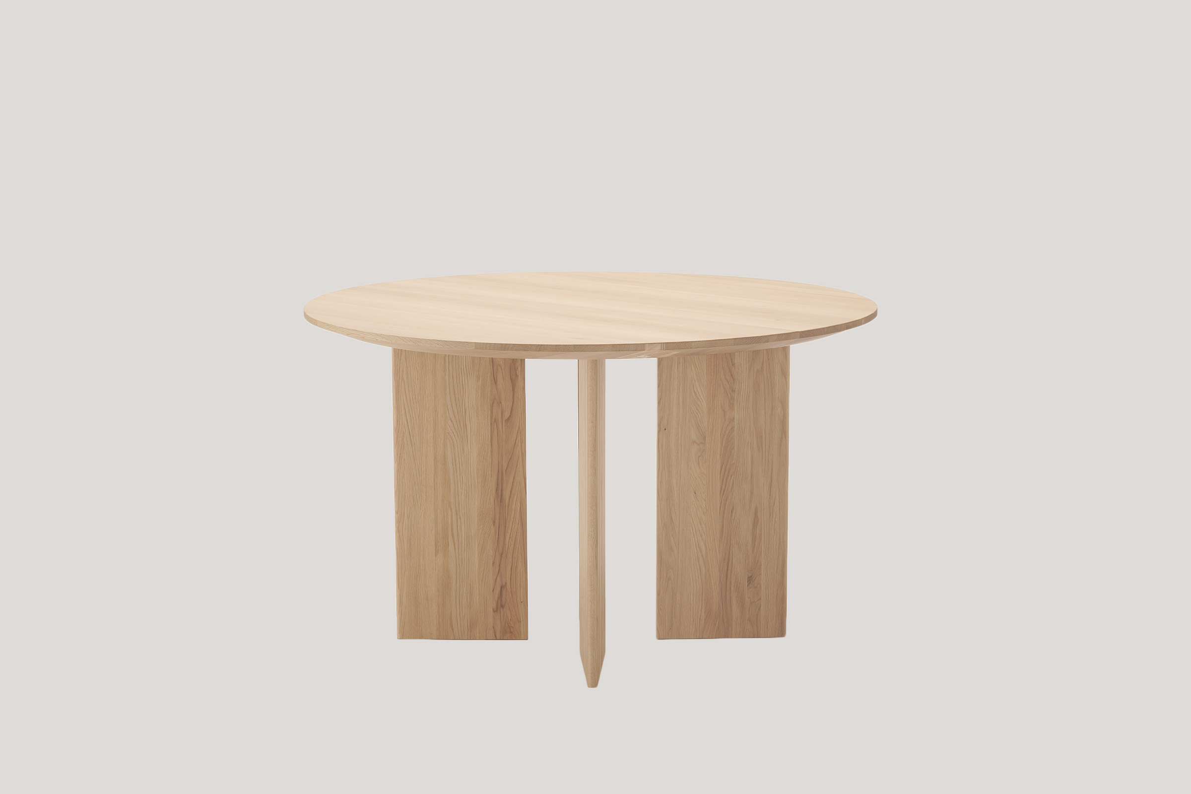This round table is based on the design of A-DT02 | Dining Table adapted to European hospitality and culture. The legs’ shape and their attachment angle are drawn from A-DT02 | Dining Table. The visual lightness thanks to no apron enables the versatility of the table, which fits in many locations, including hospitality facilities.