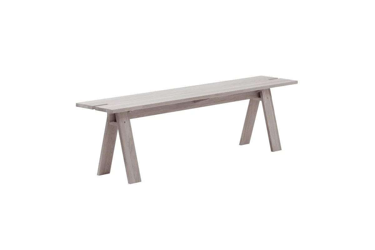 もともとは市民の野外映画館のベンチとしてデザインし、石巻工房のワークショップで石巻工業高校の生徒らとともに制作したものです。その後、ハーマンミラー社によるワークショップでは石巻周辺の仮設住宅に暮らす人たちと一緒に25台を制作しました。今回カリモク家具との協働により、石巻工房の図面をそのまま再現するのではなく、落葉広葉樹を用いる事で構造的に成立する厚みを模索し、オリジナルよりもスリムな印象の ISHINOMAKI BENCH となりました。