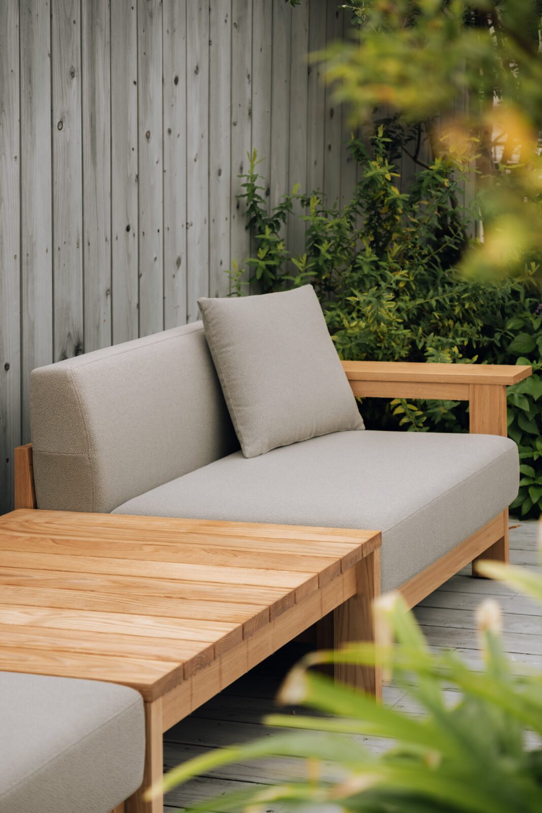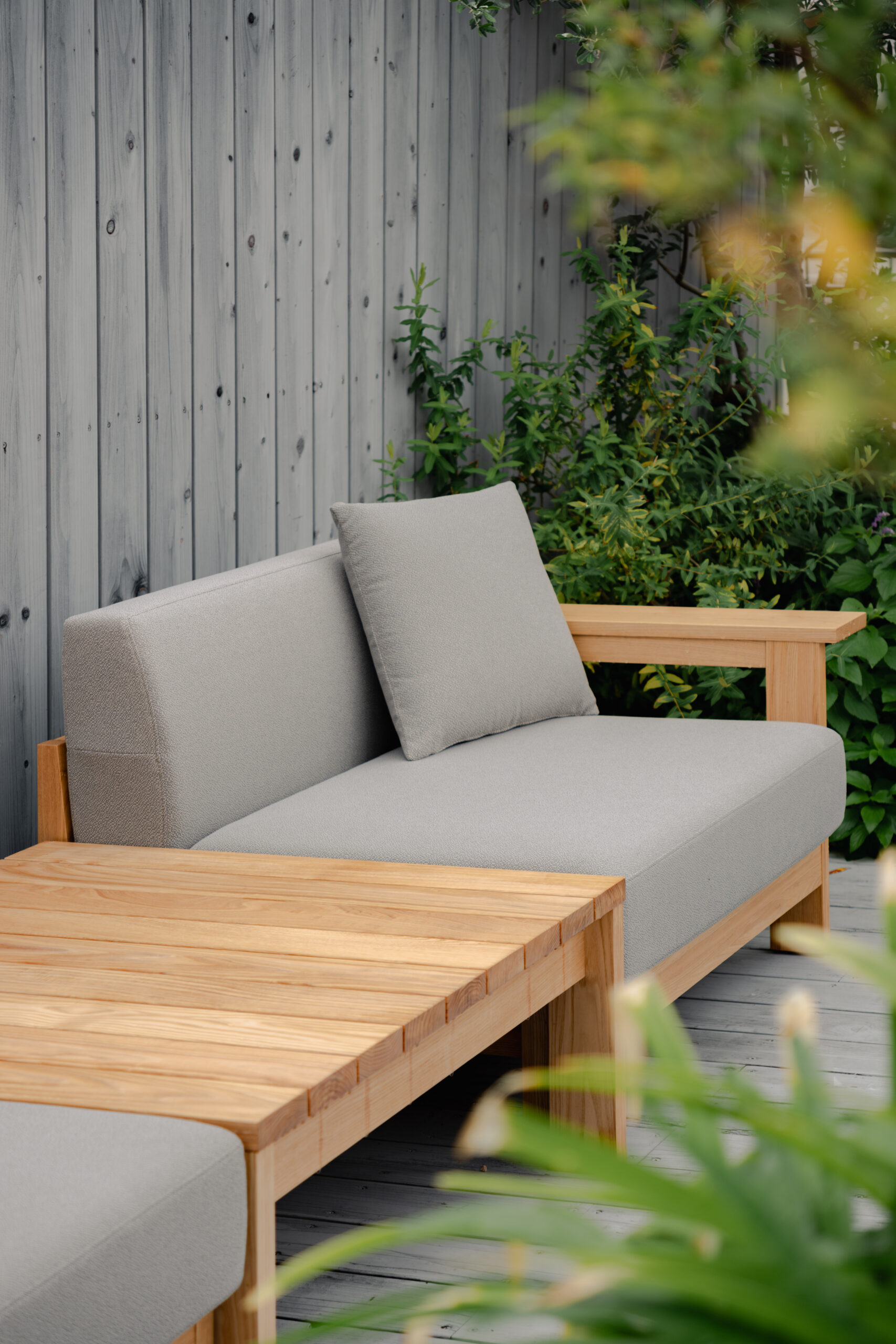 これまでのアウトドア用ソファから、この度ソファに集う人々が屋外で心地よく過ごせるように、ソファとテーブルが様々なスタイルに組み合わせられるシステムとして発展させています。