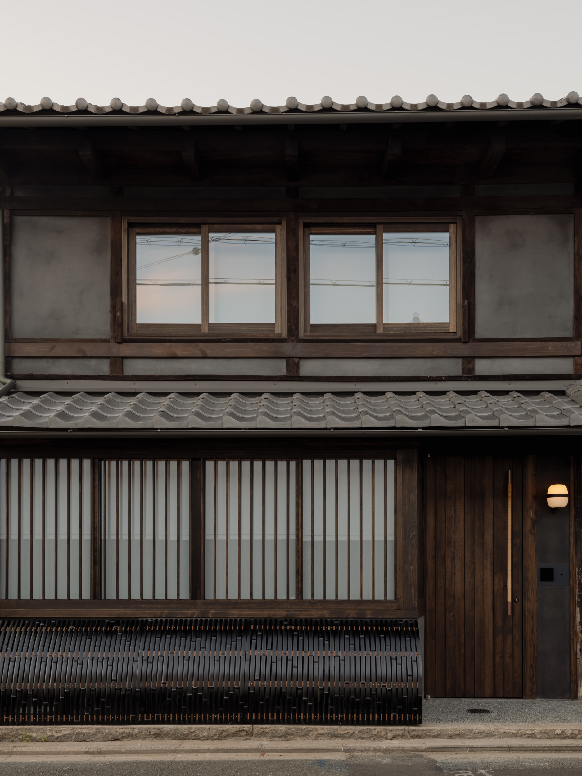 築140年の時を重ねてきた2階建ての京町家(住居)を8人まで宿泊できる1棟貸しに改修した。既存の空間構成として格子、通り庭、吹き抜け、軸組み、奥庭、床の間、上がり框、障子があり、それらの構成を壊すことなく改修を行っている。