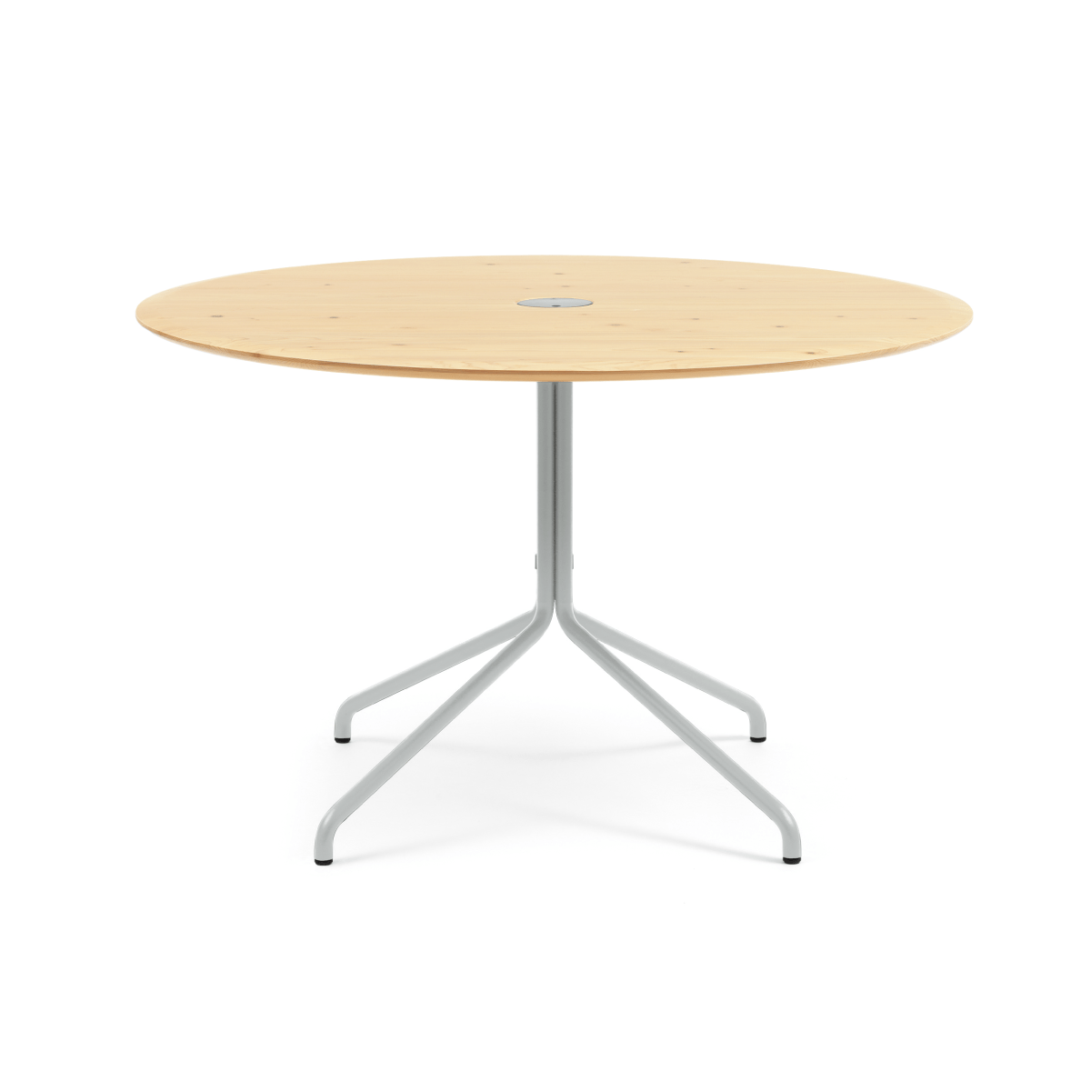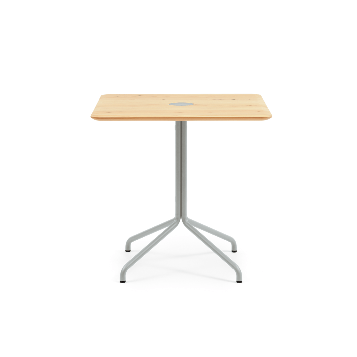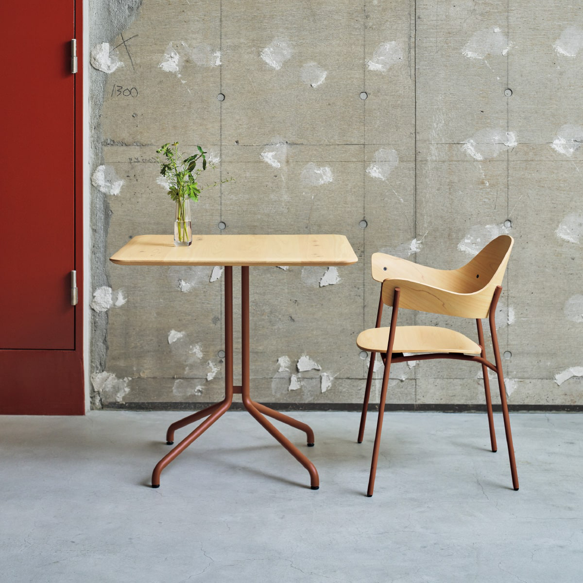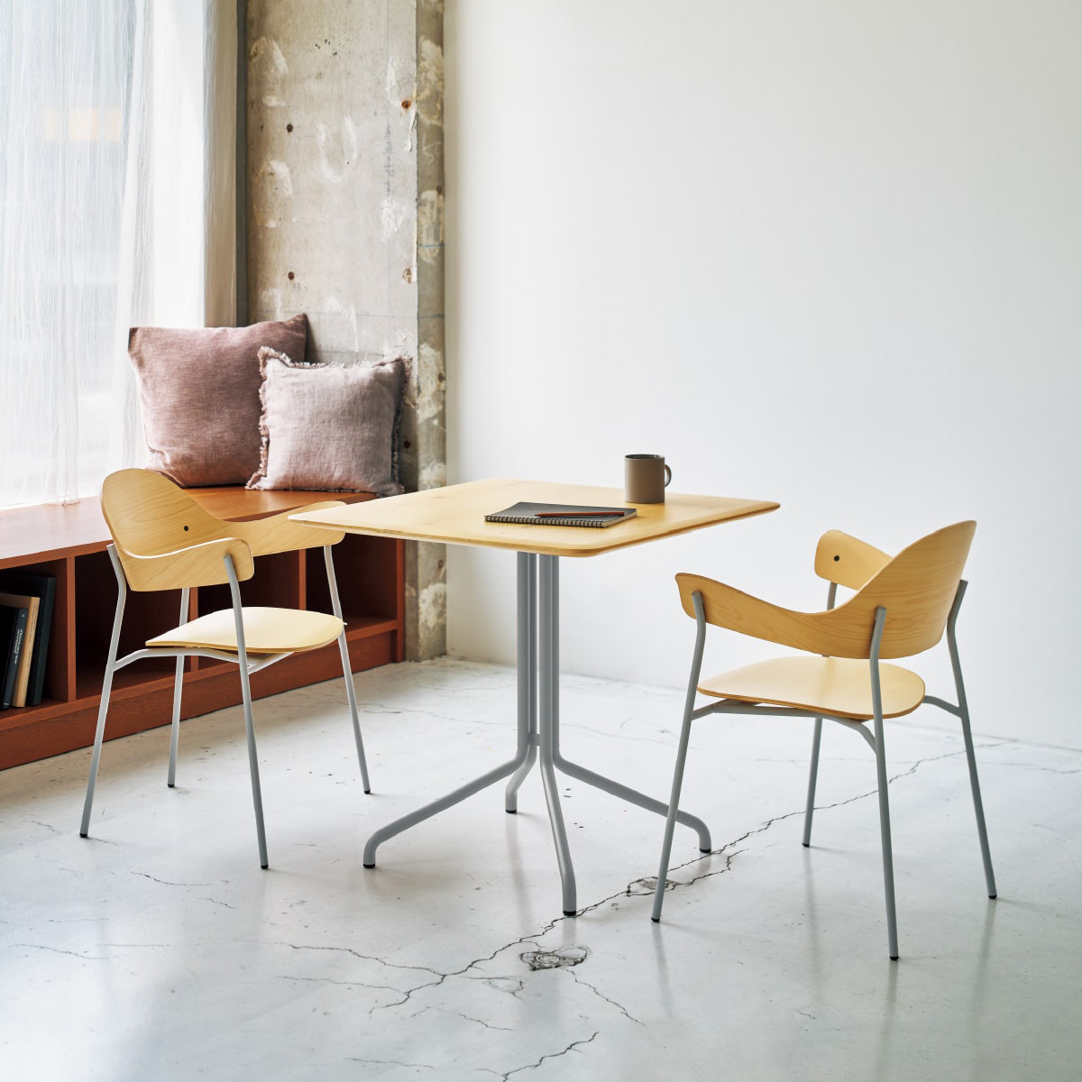 ym-04は無垢材の特徴を活かした、手触りがよい柔らかくなめらかな天板形状のテーブルです。ym-02チェアーの繊細な脚元と親和性を持たせ、チェアーの軽やかで優美なデザインをより一層引き立てるとともに、テーブルセットとしての統一感をもたらします。また、スライドして開閉できるカバーで使いやすい位置にある机上コンセント、脚に添わせて美しく配線するクリップと、ワ―クに必要な機能がデザインに無理なく溶け込んでいます。自然素材らしい柔らかさと、オフィス家具の機能性を両立するテーブルです。