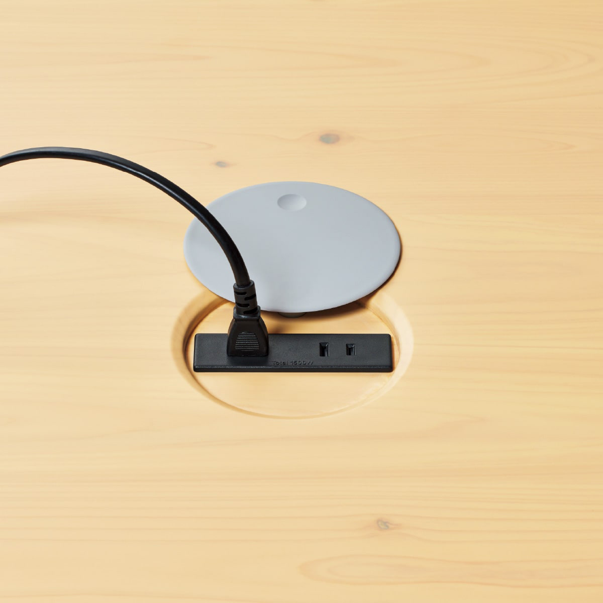 YM-04 is a table that makes use of the characteristics of solid wood, featuring a soft and smooth tabletop shape that feels pleasant to the touch. It has affinity with the delicate legs of the YM-02 chair, further enhancing the chair’s light and elegant design while bringing a sense of unity as a table set. In addition, a desk power outlet positioned for ease of use with a sliding cover that can be opened and closed, and clips that guide cables neatly along the legs, integrate the functions necessary for work naturally into the design. It is a table that combines the softness characteristic of natural materials with the functionality of office furniture.
